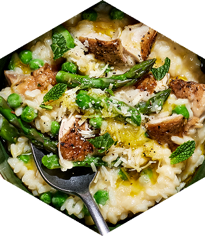 Chris Baber’s risotto recipe revels in the flavours of spring, delivering a bravura dish that is both eye-catching and palate-pleasing. Leftover roast chicken provides a healthy hit of protein alongside seasonal veg (hiya, asparagus season), fresh mint, Parmesan and mascarpone. And if you choose to mop it all up with a hunk of bread then, frankly, bravo.