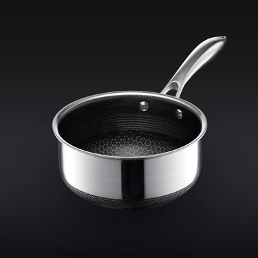 The HexClad 2 Litre Hybrid Pot with Lid is perfect for everything from making sauces, heating liquids, cooking grains, and reheating. It is a small but versatile staple in any cook's kitchen.