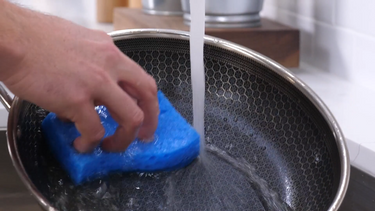 Since this is a Hybrid pan and contains stainless steel, temporary staining can occur. Since the pan is metal-utensil safe it allows you to use more abrasive sponges like steel wool. For tough stains, allow your pan to soak in warm soapy water for 10-15 minutes followed by a scrub with a more abrasive sponge. Barkeeper’s Friend works great too!